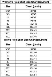During registration you will be asked to select the size for your polo shirt. There are ladies and men’s sizes. Please make a note of the size you need; it is always better to size up if you are not sure.